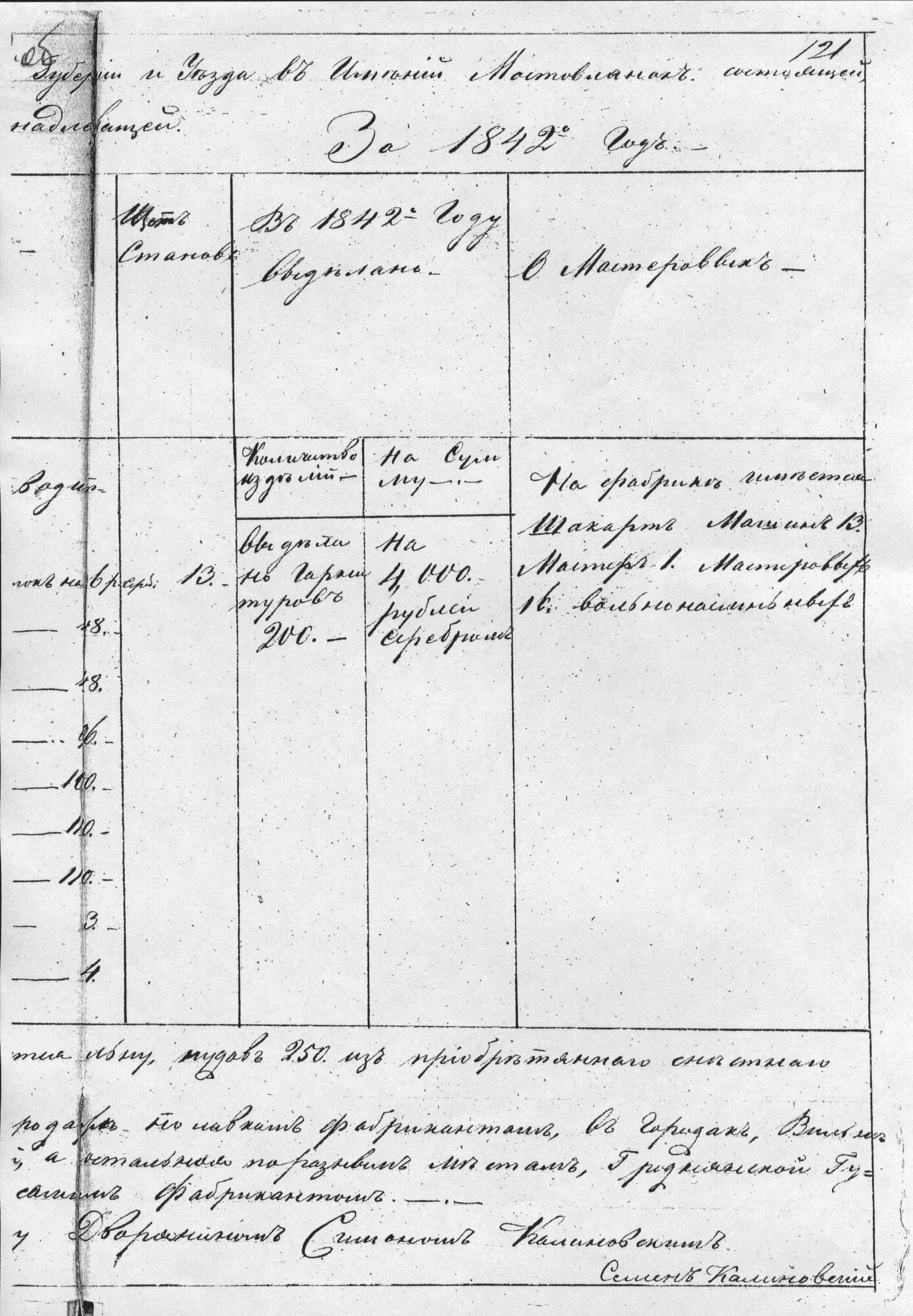 1842 г. - Ведамасць палатнянай фабрыкі ў маёнтку Мастаўляны Сымона Каліноўскага